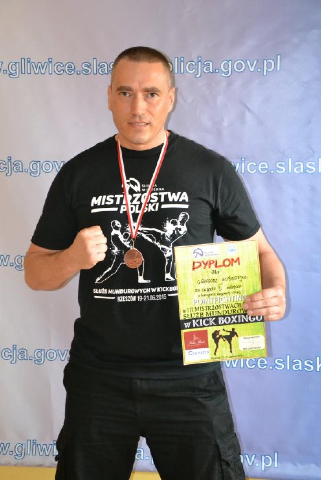Gliwicką komendę reprezentował Grzegorz Sobierajski - na co dzień funkcjonariusz gliwickiej jednostki, prywatnie trener Stowarzyszenia Fight Club Knurów.