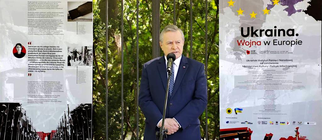Trwa wojna, Federacja Rosyjska napadła na suwerenny kraj. Codziennie przynosi ona ogromne ofiary - wśród ludności cywilnej i bohaterskich obrońców Ukrainy. (…) Ukraina walczy za nas wszystkich, za Polskę, za Europę, za cały świat, musimy być dzisiaj z Ukrainą – powiedział podczas otwarcia wystawy plenerowej wicepremier prof. Piotr Gliński.