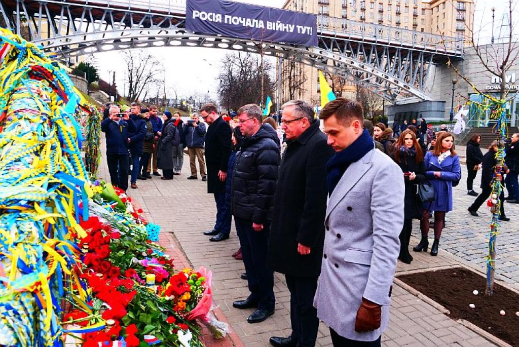 W szóstą rocznicę krwawo tłumionych protestów w Kijowie Ambasadorowie państw Dziewiątki Bukaresztańskiej, obejmującej Polskę, Bułgarię, Czechy, Estonię, Litwę, Łotwę, Rumunię, Słowację, Węgry, uroczyście złożyli znicze i kwiaty w miejscu brutalnej rozprawy przy ul. Instytuckiej.