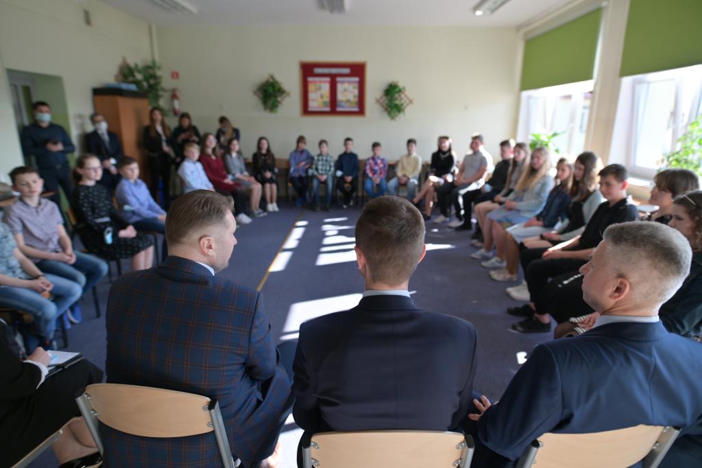 W środę, 23 marca br. Minister Edukacji i Nauki Przemysław Czarnek odwiedził Zespół Szkół w Bojanowie. W placówce szef MEiN spotkał się z uczniami klas IV-VIII oraz dziećmi z Ukrainy, które znalazły się w Polsce po wybuchu konfliktu zbrojnego za naszą wschodnią granicą.