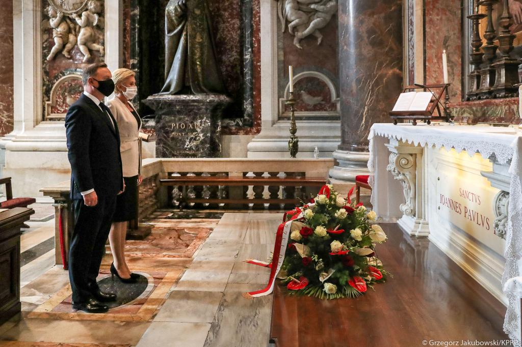 Prezydent wyraził radość, że mógł uczestniczyć we mszy świętej oraz wspólnie z Małżonką i polską delegacją złożyć wieniec na grobie Ojca Świętego Jana Pawła II, a także modlić się za Jego pośrednictwem o powodzenie dla naszej Ojczyzny i dla całego naszego narodu.
