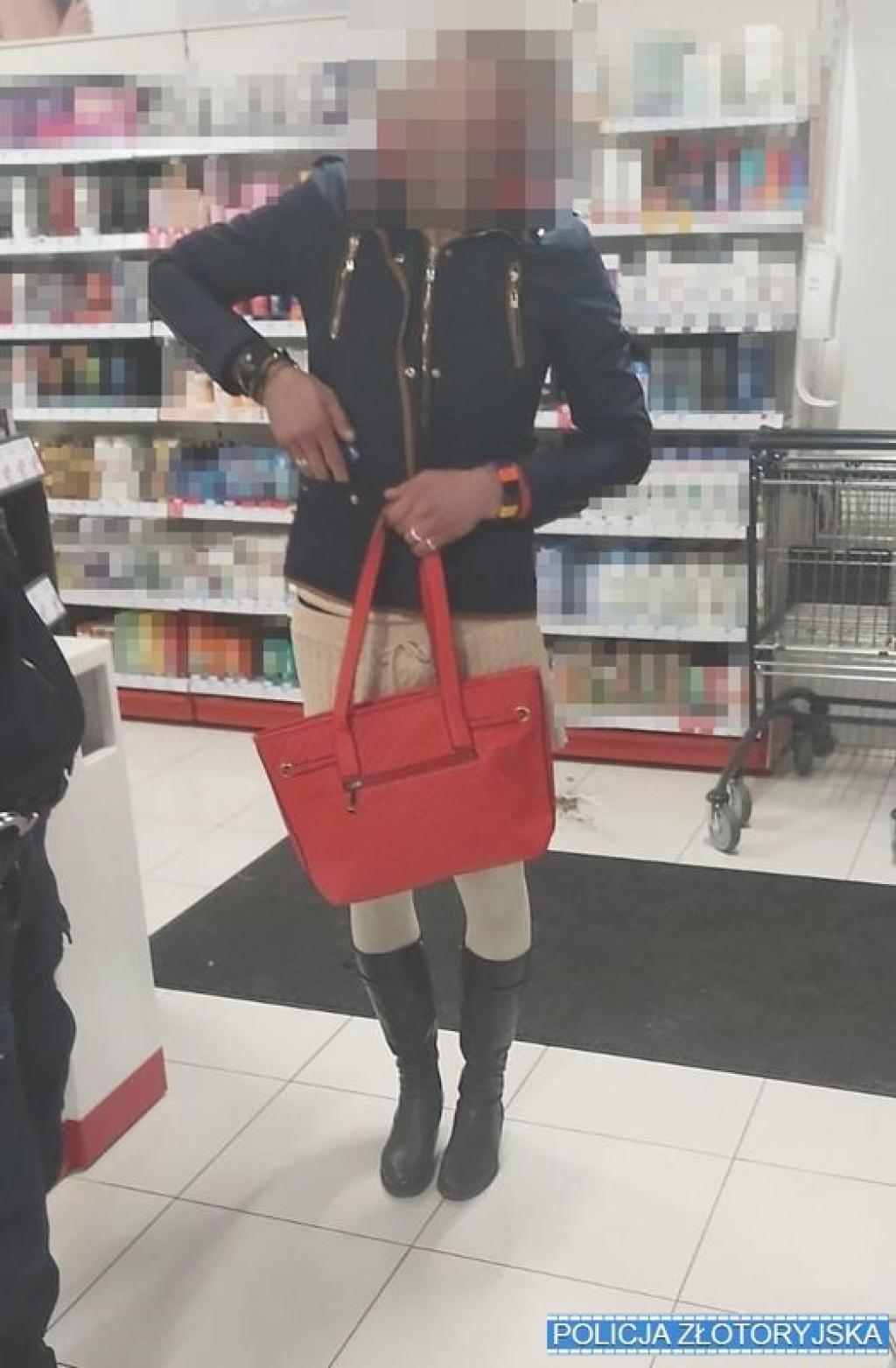 Dyżurny z Komendy Powiatowej Policji w Złotoryi otrzymał informację dotyczącą kradzieży mienia w jednym ze sklepów z artykułami kosmetycznymi na terenie miasta. Ze zgłoszenia wynikało, że do placówki handlowej weszła wysoka, szczupła kobieta. Kiedy pracownicy zauważyli, że klientka bierze z półek artykuły, a następnie chowa je do torebki, niezwłocznie poinformowali Policję i w tym samym czasie udaremnili jej oddalenie się ze sklepu.