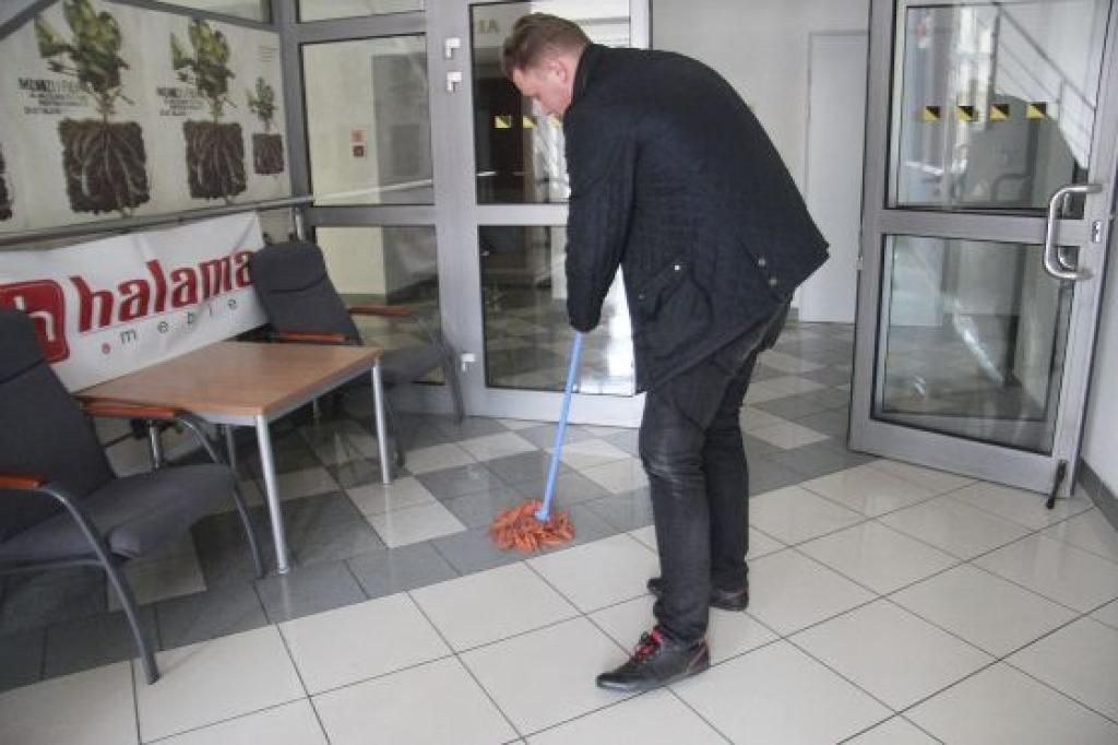 Ciekawą akcję przeprowadził redaktor naczelny KoszalinInfo.pl - Marek Łagocki, który zaskoczył dyrektora CK 105 w Koszalinie i obśmiewając działalność oraz rozrzutność umył podłogę zupełnie za darmo.